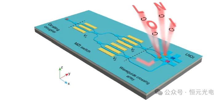 片上超表面已被用来操纵导波进入具有所需波前的自由空间,并弥合导模和自由空间光场之间的差距。然而,现有的用于导波辐射的片上超表面在实际应用中通常缺乏动态可调性和高容量复用。近日,南京大学李涛教授、祝世宁院士团队提出了一种基于动态波导的全息显示器,该显示器由绝缘体平台上的铌酸锂上的片上超表面网络实现。基于几何相位和迂回相位,在2×2波导交叉阵列上实现的片上多路复用元表面网络与两级铌酸锂(LN)开关相结合,构建了一个可寻址的框架。具体内容以“Dynamic holographic display with addressable on-chip metasurface network based on lithium niobate photonics”为题发表于《Light: Science & Applications》上。